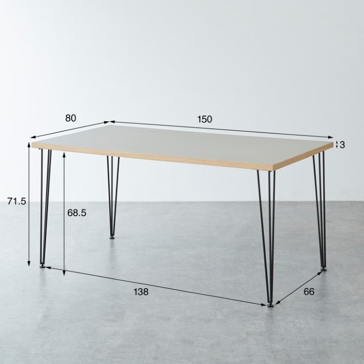 | サイズ | 幅150cm × 奥行80cm × 高さ71.5cm 天板厚み:3cm |