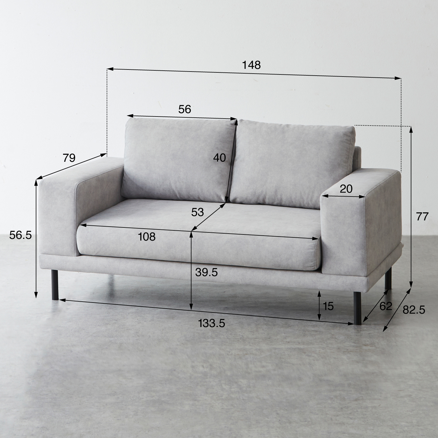 | サイズ | 幅150cm × 奥行80cm × 高さ77cm 座面高:38cm |