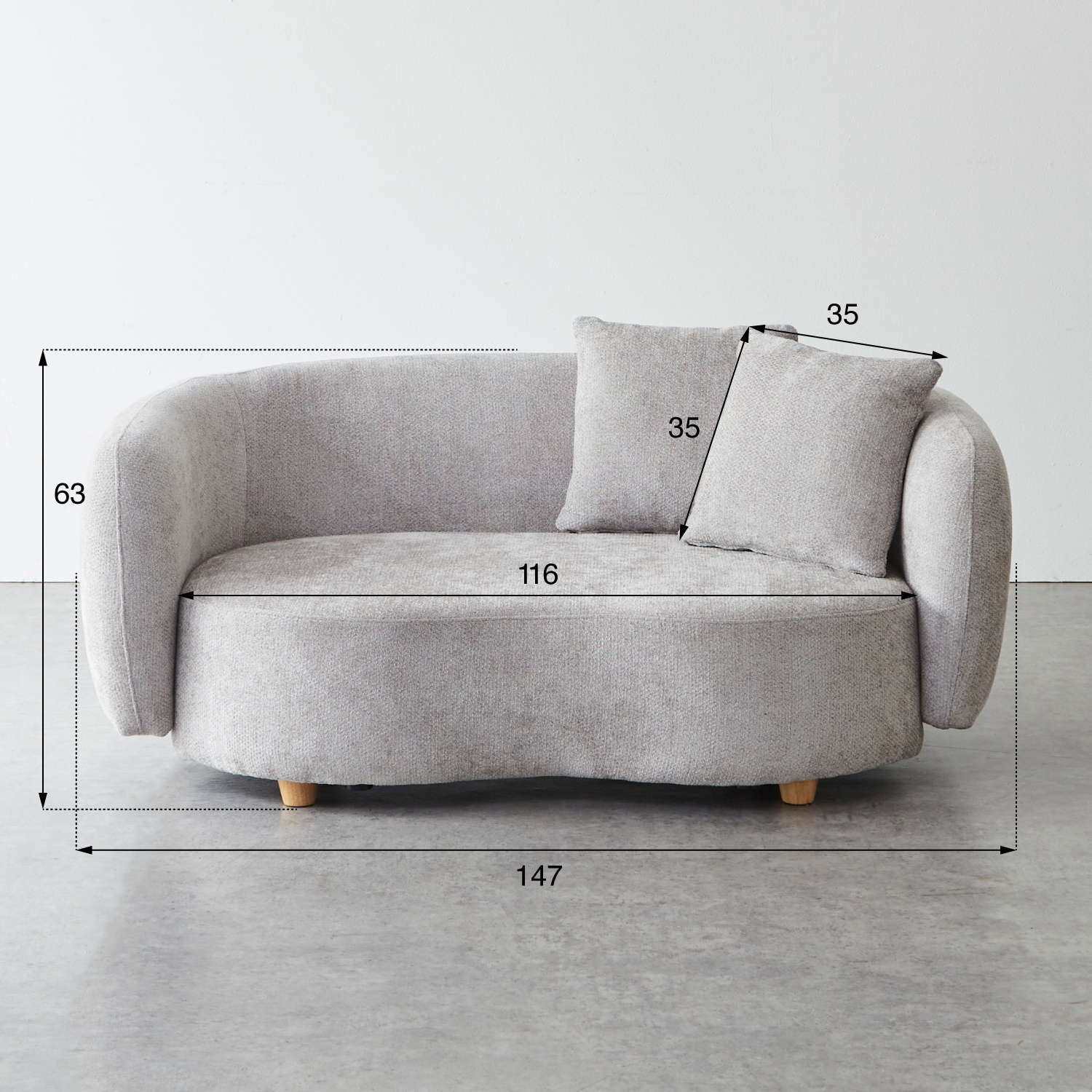 | サイズ | 幅150cm × 奥行90cm × 高さ63cm 座面高:38cm |